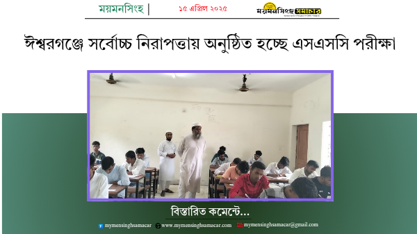 এ বছর ঈশ্বরগঞ্জ উপজেলার মোট ৯টি কেন্দ্রে ৪ হাজার ৮৮৫ জন পরীক্ষার্থী মাধ্যমিক স্কুল সার্টিফিকেট (এসএসসি), দাখিল ও এসএসসি ভোকেশনাল পরীক্ষায় অংশ নিচ্ছে। সুষ্ঠু, নকলমুক্ত ও নিরাপদ পরিবেশে পরীক্ষা গ্রহণ নিশ্চিত করতে উপজেলা প্রশাসনের পক্ষ থেকে নেওয়া হয়েছে কড়া নজরদারি।